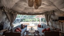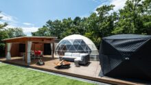 駿河湾に沈む夕日と満天の星空を望む、森の中に佇むわずか2棟のグランピング施設「ブルーエデン」。特別な日を大切な家族や仲間と共に、完全プライベートな空間でお過ごしいただけます。四季を通じて快適に過ごせるドームテントは、まるで別荘のようなプライベート感。深緑の森の音に包まれながら、ゆったりと流れる時間を楽しむひとときは格別です。併設されたテントサウナでは、ロウリュウや水風呂で心身を整え、昼は揺れる木々の光、夜は果てしない星空を眺めながら贅沢なリラックス体験を。屋根付きのBBQエリアでは、雨の日でも快適に食事を楽しめます。必要な設備が揃った広々としたスペースで、自分たちの好きな食材を調理し、会話に花を咲かせる時間を満喫。旅の終わりには、美しい自然とともに過ごした思い出が、心に深く刻まれることでしょう。