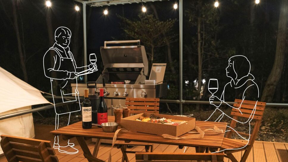 | 木々のささやきと鳥たちの舞う、美しい自然に包まれた特別な空間。 伊豆の幸と中華を融合させたオリジナルBBQを楽しみ、足湯でリラックス。薪割り体験で自然と触れ合う、贅沢なひとときをお過ごしください♪ |