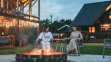 | 山頂で眺める夜景や朝日は、日常を忘れさせる特別な瞬間♪ アウトドアバーで贅沢なひとときを楽しみ、ファイヤープレイスの炎に癒されながら、非日常の時間をお過ごしください。 |
