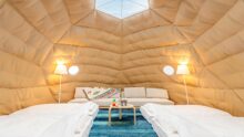 7月22日(月)から1泊2日で宿泊しました。子どもたちはグランピング及び、キャンプは初めてで部屋に入ってホテルや旅館と異なる雰囲気に戸惑いを見せていましたが、直にそれも受け入れた様子で今回の旅を満足してくれた様子でした。立地や食事、サービスともに満足でした。特に、食事においてはお肉の味付けは良かったし野菜も新鮮で美味しかったです。一つ言うとすれば、御飯物がパエリアではなく、白米あるいはキッズメニューにあったように焼きおにぎりであれば、なお良かったです。サービス面においては、寿の湯と連携しており温泉を心行くまで楽しめたこと、帰る日には施設内の近代的なライブラリーを利用できたことは100点満点でした。家族や自然が大好きな私にとって、忘れられない思い出になりました。ありがとうございました。
