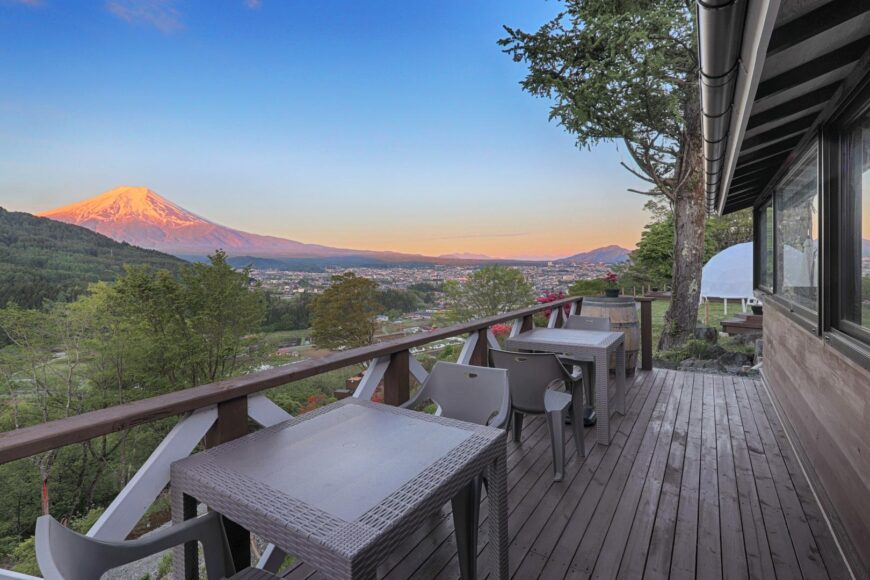 | 富士山を一望できる絶好のロケーションが魅力のグランピング施設! 山梨県産の新鮮食材を使ったこだわりBBQを堪能し、天然鉱泉の貸切露天風呂やバレルサウナでリラックス。木々に囲まれた静かな環境で、小鳥のさえずりや虫の音に癒されながら、自然を存分に満喫してください♪ |