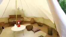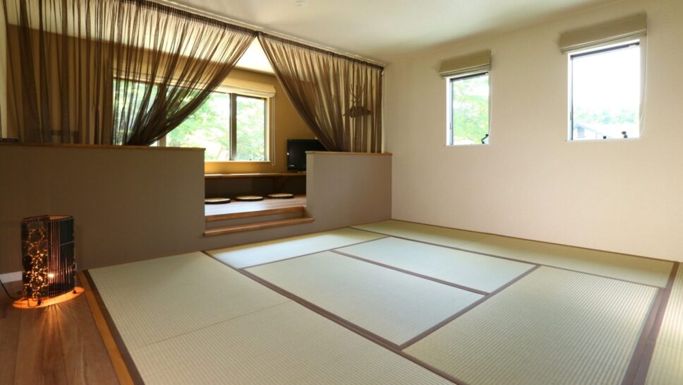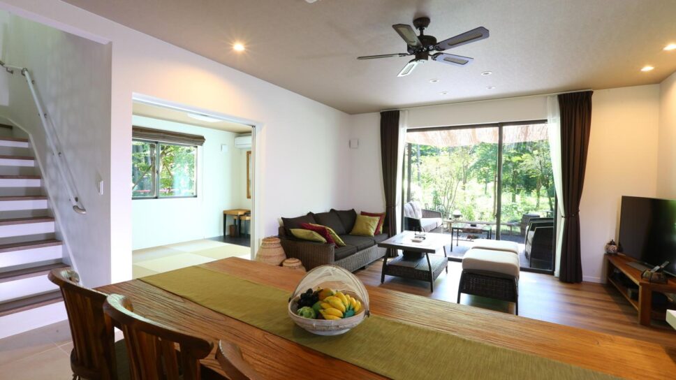 河口湖インターからわずか5km、自然に囲まれた静かな森の中に佇むプライベートヴィラ。約5000平方メートルの広大な敷地には2棟のみの特別な空間が広がり、周囲を気にせず仲間や家族で快適なひとときを過ごせます。館内は、バリ島から特注したチーク材やライムストーンのレリーフで彩られ、居心地の良いリゾート空間に。リビングから続くテラスでは、森を眺めながらリラックスした時間を。屋根付きBBQ場やグランピングテント、ハンモック付きのプライベートガーデンでアウトドアも楽しめます。日常を離れ、心と体が休まる「森の休日」をお楽しみください。
