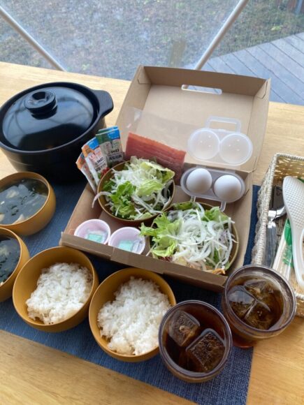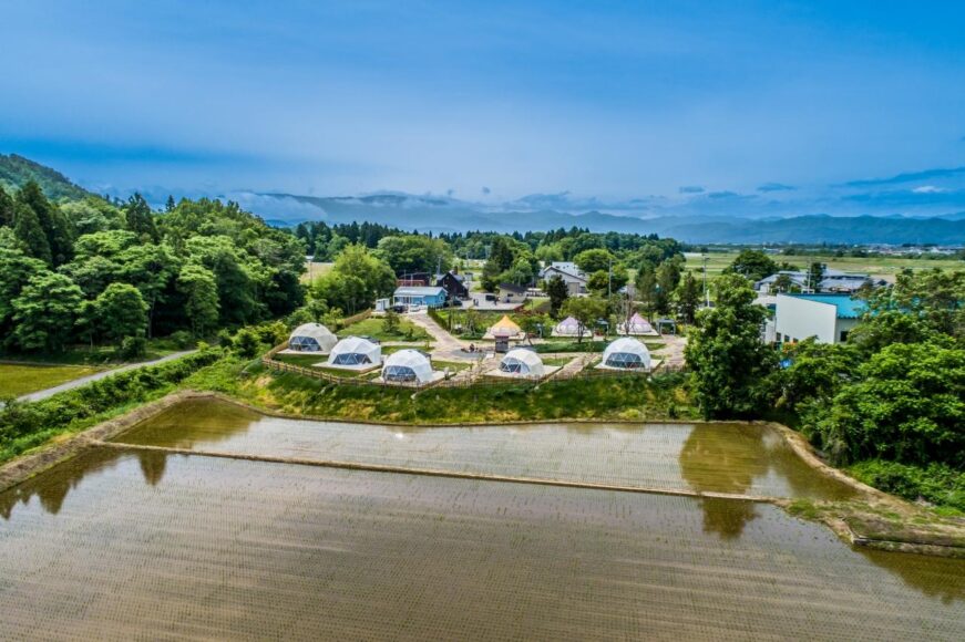 | 田園風景が広がる静かなロケーションで、何もしない贅沢を堪能♪ 山形県の食材をふんだんに使ったBBQを味わい、ドカンサウナで心も体もリフレッシュ。焚火の温もりに包まれながら、ゆったりとした時間をお楽しみください。 |