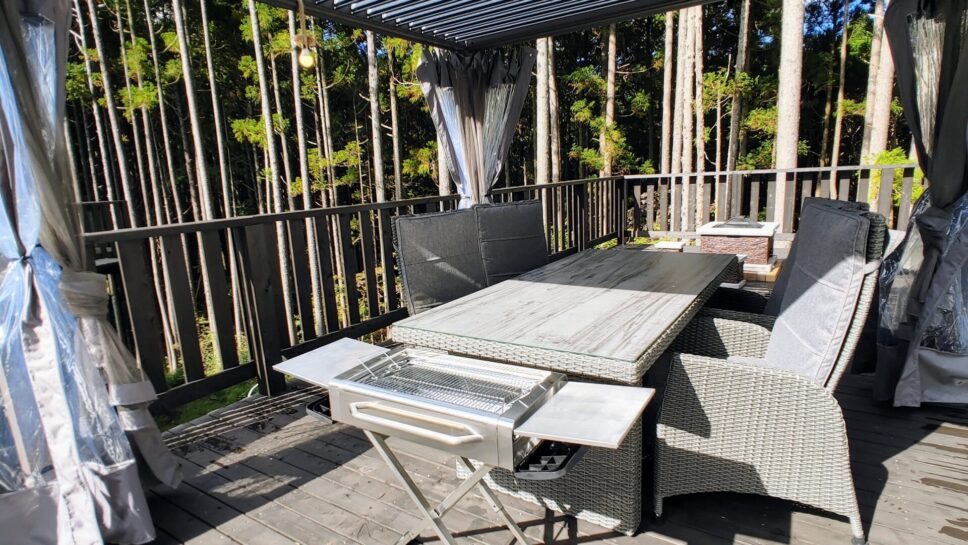 8月10日雨の中のグランピングでしたが、部屋の前でBBQができて良かったです!お肉もハンバーグも美味しくて、子供達はマシュマロを焼くのがとてと楽しかったみたいです。施設内で化石掘り体験ができて、マルシェで買い物もできて悪天候でもコンパクトに楽しめました。焚き火やハンモック,花火ができなかったのでリベンジしたいなと思います!