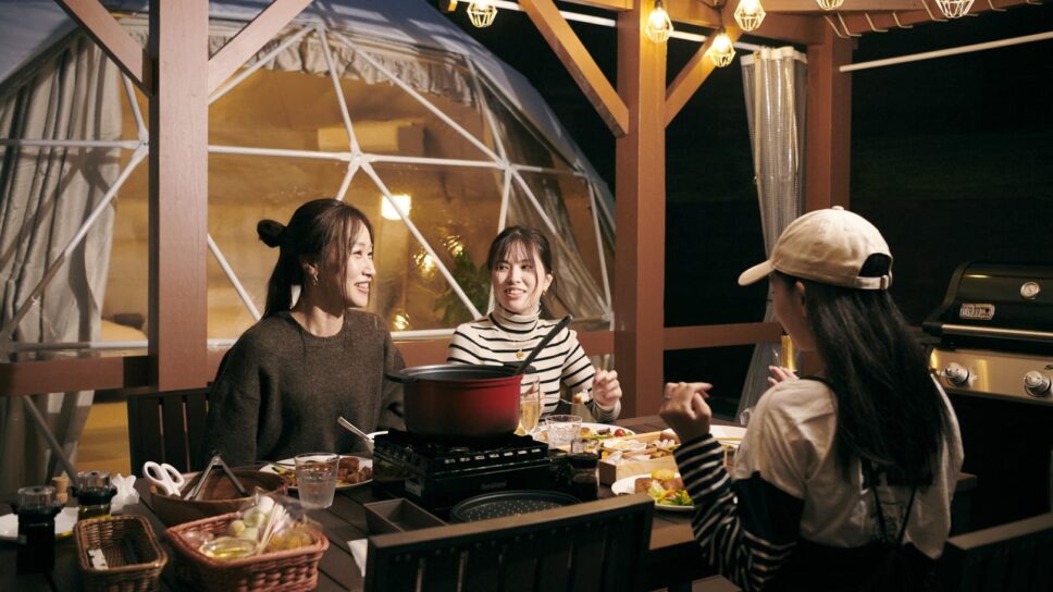 | 星空に包まれた特別な夜をドームテントで満喫!天然温泉や露天風呂、サウナ、岩盤浴で癒され、キッズエリアでの遊びも充実。大切な人と贅沢なひとときを♪ |