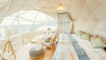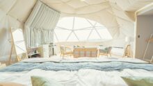 憧れのドームテント!近場で体験できるととても楽しみでした。設備の全てがかわいく、清潔感もあり、理想通りでした。食事もおいしくて満足。日の出を楽しみにしていましたがあいにくの曇りで残念でした。テントの中は暖かく、外での食事も風除けと暖房器具で過ごしやすくなっていました。帰りたくない!また行きたい!と子供たちがずっと言っています。またお世話になりたいです。