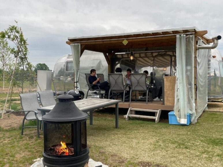 北海道の雄大な自然の中にある「ぶどう畑のBBQ&グランピング」。1日2組限定のプライベート空間で、ヴィンテージトレーラーやドームテントから望むぶどう畑の絶景は格別です。料理はエーデルワイスファームの製品を使用したBBQや薫製料理をご用意。特別な景色と美食を味わいながら、贅沢な時間をお過ごしください。