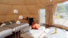 学生時代の友人たちと久々に集まりグランピングをとのことで、利用させていただきました!初のグランピングでしたが最高の思い出になりました。部屋が想像以上に綺麗で快適で、とても心地よく過ごせました。また、夕飯のBBQと朝の和朝食が最高でした!食事会場は屋根がついているので、雨天でも大丈夫です。一つ気になったのは、シャワー室に洗面がついているのですが、ハンドソープが置いてあると便利だったなと思いました。スタッフの方の感じもとてもよく、丁寧に対応していただきました。全体的にとても快適で、大満足の旅になりました!また機会があればぜひ利用したいです。