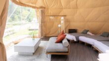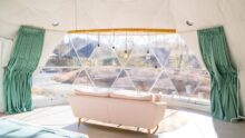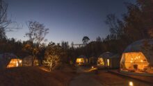 竹林に囲まれた自然豊かな環境で、グランピングやキャンプ、日帰りBBQなど多彩なアウトドア体験を提供する複合施設です。グランピングエリアでは、冷暖房完備の快適なドームテントで最大6名まで宿泊可能。また、冬季には隣接する温室でいちご狩りが楽しめ、宿泊者限定で夜間の収穫体験も可能です。地元の新鮮な海産物や野菜を使ったBBQも魅力の一つで、手ぶらで気軽にアウトドアを満喫できます。