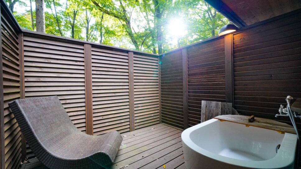 | 広大な森の中に佇む一戸建てコテージで、プライベートな別荘気分を味わえます! 全棟離れているので、ご家族やグループで周囲を気にせず気兼ねなく過ごせるのが魅力♪ 敷地内の温泉施設「花いずみの湯」で、自然の効能を堪能できるのも嬉しいですね。 |