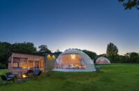 初めてのグランピングで利用しました。周辺にラムーやスーパー、ダイソーなどもあり行く前に色々調達出きるので便利な場所だと思いました。ピザ窯作りの体験があり、子供たちも楽しんでいました。スタッフさんは皆さんとても親切で話しやすかったです。食事も美味しかったです。調理器具なども揃っていて、冷蔵庫も大きかったので、次回は素泊まりにして、持ち込みもありだと思いました。夜中起きてお手洗いに行くのにバーベキュー小屋まで行かないといけないのだけは不便でしたが全体的には満足でした。今度は涼しくなる秋にお邪魔したいです。