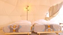 グランピング初心者で,幼児を一人連れていましたが,スタッフも親切で快適に楽しい時間を過ごすことが出来ました.夕食・朝食も満足です.安いとは言えない料金ですが,他の利用者の方々もゴミの分別など自分たちで片付けをされていたのが印象的で,宿泊される方もそれなりに余裕のある方が滞在されているのかな,と思いました.もう少し色々とグランピングの準備をして,また訪問したいです. 設備は安心して使用できるものばかりでした.一方で敷地内の植栽だけは,デッキ下の目隠しも含めてもう少しだけ良かったらいいのにと思いました.これからの発展に期待です.
