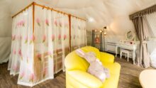 | 日本有数のパワースポット、弥彦山の麓のグランピング施設。彌彦神社や弥彦山ロープウェイなど、人気観光スポットへのアクセスも◎。施設内には大浴場、サウナ、プールが併設されています。 |