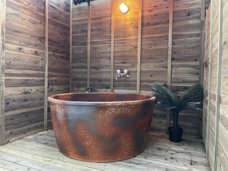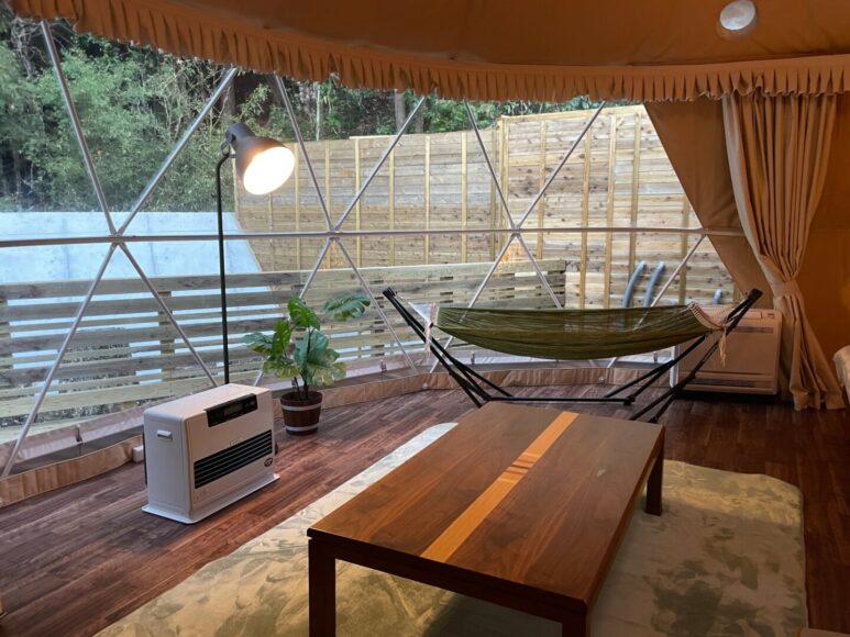 元々別の場所でキャンプ予定でしたが大雨のため急いでグランピングのできる場所を捜し、ここに泊まりました。素泊まりで1人6000円でデッキには湯船もあり、夜風に当たりながらお風呂に入れて最高でした!設備もこの値段で申し分ないです!ただ電気ケトルの中に水が少し入っていたのが気になりました。