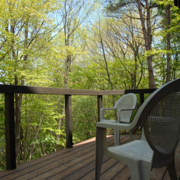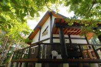 | 森に囲まれた2棟のコテージは、しっかりとした造りで10人以上の宿泊も可能です。広々とした空間で、みんなでワイワイ楽しみながら、BBQや渓流釣りなどの様々なアクティビティを満喫できます。 |