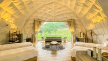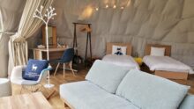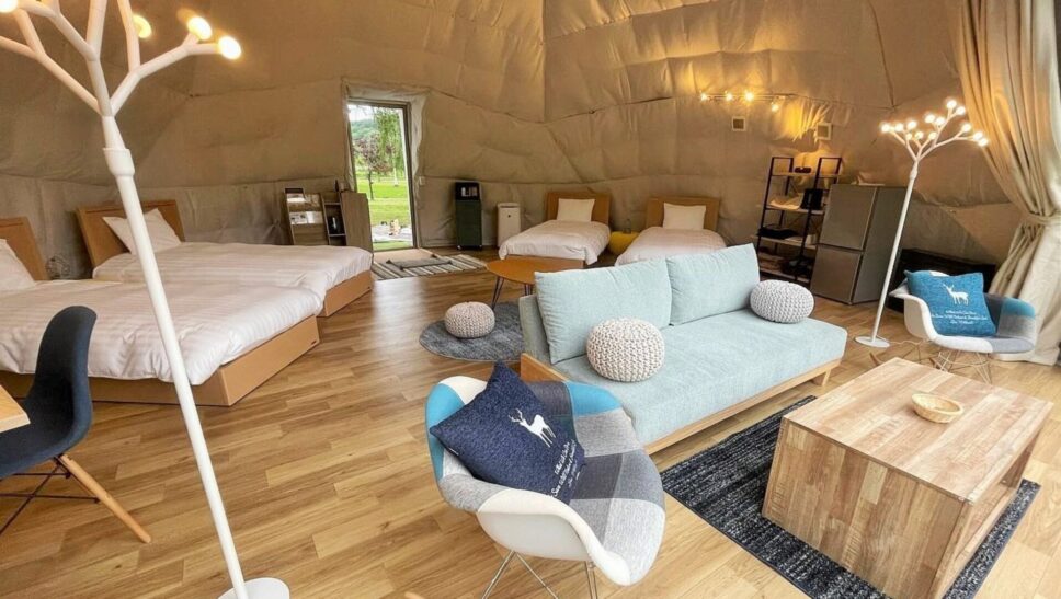 | グランピングは6月~9月末の期間に利用できます!(※予定 天候等により実施期間が変更となる場合有り) 1日1組限定のプライベート空間で心も身体も癒されてください。 |