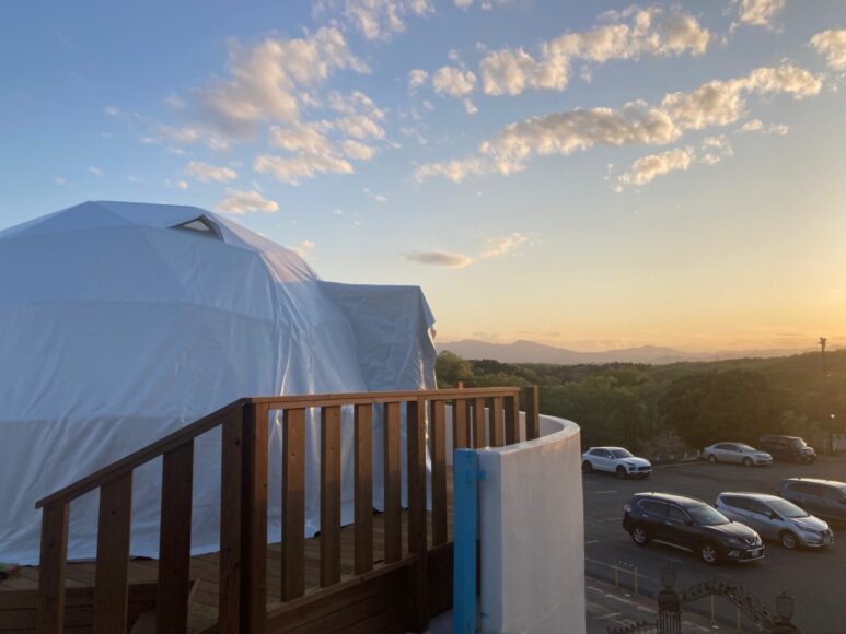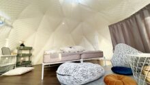埼玉県熊谷市の「ホテルヘリテイジ 四季の湯温泉」では、2023年春に「プールサイドグランピングラグーン」がオープンしました。ドーム型3棟とテント型2棟の施設にはシングルベッド2台、寝袋、電気ポット、AC100V、エアコンが完備されています。 食材や飲み物の持ち込みが可能で、BBQコートでお好みのBBQを楽しむことができます。滞在中は天然温泉「四季の湯温泉」が利用できるのも嬉しいポイントです!