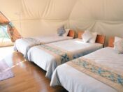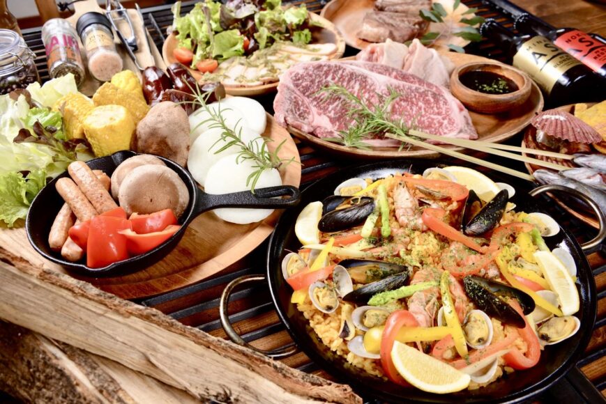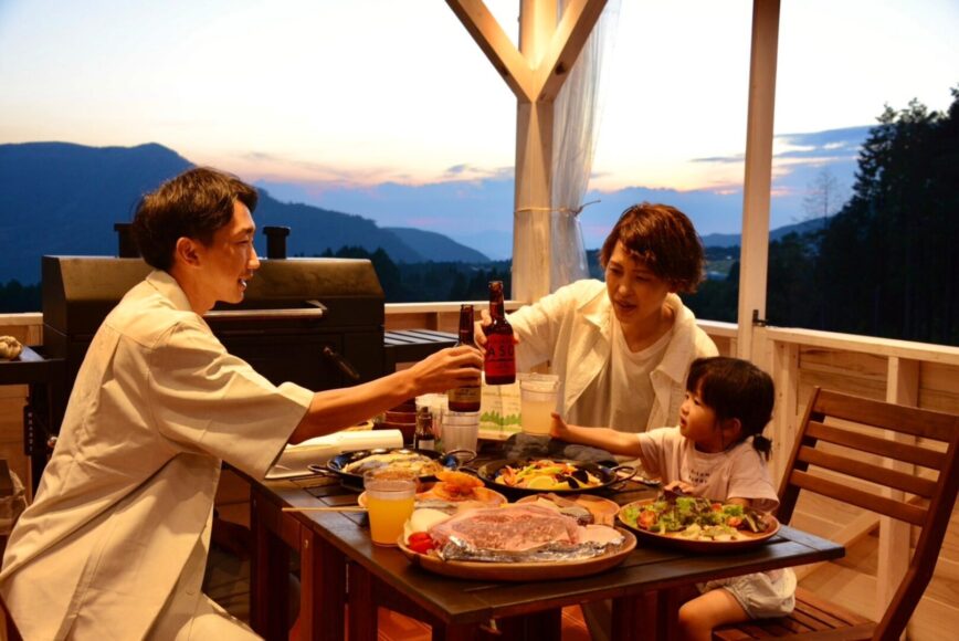 | 各部屋エアコン完備、個別バスルーム付でアウトドア初心者の方も安心して過ごせます。"フードマスター"菱江 隆氏監修のもと、地産地消・無添加にこだわった食材を使用したお食事は格別です。 |