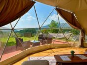 6月20日に初グランピングでゲルテントに宿泊しました。ペットは、宿泊ゲルの専用庭で自由に過ごせて、ワンちゃんも阿蘇の雄大な自然を満喫。お風呂は内風呂・露天風呂と温泉が最高でした。BBQや朝食はイチゴジャム作り、ホットサンド作りとキャンプ気分が味わえました。リピーター確実です(^^)