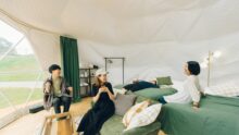 | アウトドアでリフレッシュも、温泉でのリラックスも、両方叶えられるいいとこどりのグランピング施設です! |