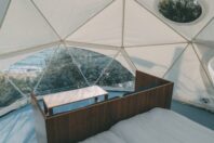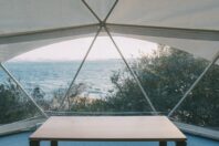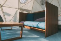 | デニムを使ったインテリアが映えるドームテント。まるで海に浮かぶトレーラーハウス。シーンにあわせたスタイリッシュなステイが叶います。 |