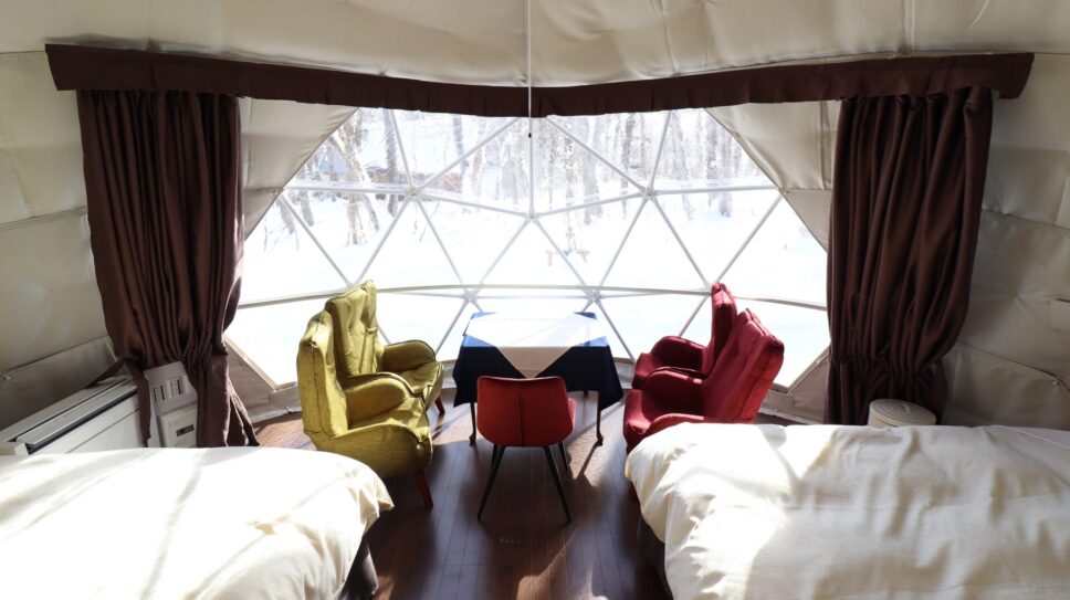 「Oak Village」は、白馬村の美しい自然環境の中に位置するグランピング施設です。トレーラーハウスやドームテントなど、多彩な宿泊施設を提供しており、各施設は高い快適性とデザイン性を兼ね備えています。周囲の自然を感じながら、贅沢なアウトドア体験をお楽しみいただけます。