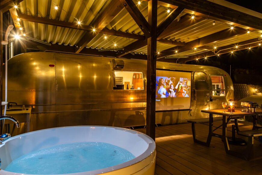 「isola base awaji」で、ビンテージトレーラーに泊まりながら、淡路島の美味しい食材でバーベキューやジャグジーバスを楽しむ贅沢なひとときを過ごせます!