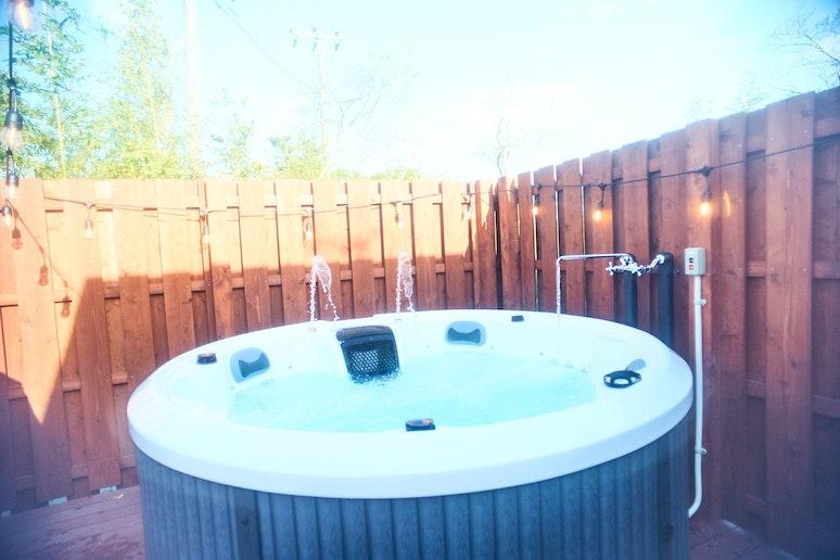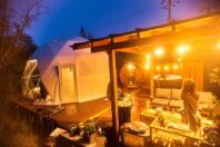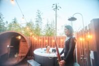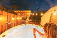 | サウナ好きグループ旅行におすすめのグランピング施設!バレルサウナのあとはライトアップされたジャグジーへ。満天の星空を眺めながら至福の「ととのい」を皆さんで満喫できます。 |
