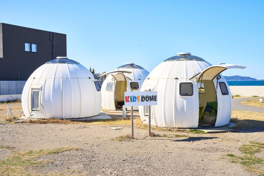 | 雨の日でも絵本を読んだり室内遊びができるキッズドームやアスレチックなど、お子さまも楽しく遊べる設備が充実しています!館山の海を感じながら、日常を忘れてアウトドアを楽しめるスポットです♪ |