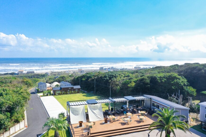 | オーシャンビューが魅力のグランピング施設! 厳選素材のBBQや焚火を楽しみながら、家族やカップルで贅沢な時間を過ごせます! |