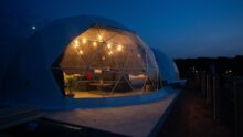 2022年5月中旬、島根県浜田市国府海水浴場エリアに、島根県初の海水浴場に隣接した「島根シーサイドグランピング浜田」がグランドオープンしました。本格アウトドア体験を1日2組限定で楽しめる特別な施設です。浜辺まで徒歩30秒という好立地で、海風を感じながらのんびりと過ごせる空間を提供。1棟最大6名様まで利用可能な大型ドーム型テントは、ファミリーや友達グループで広々と快適に過ごせます。さらに、千畳苑の宿泊と組み合わせて親子三世代での滞在も可能です。家族や仲間とともに、特別な時間をお楽しみください。