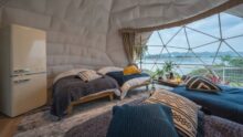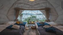 | 湖を望む絶景ロケーションの全7棟のグランピングドーム施設! BBQを楽しみ、美肌の湯「湖陵温泉」で癒されながら、出雲の豊かな自然に包まれた贅沢なアウトドア体験をお楽しみください♪ |