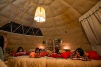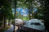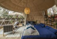 グランピングドームは2-3人用の小ぶりの方に泊まりました。大きい方のドームは目の前が芝生で景色も抜けてるのですが、小ぶりのドームの方は森の中にあるので、虫とかが気になる方は少し難しいかもです。ドームは写真通り素敵な内装で楽しく過ごせました。食事もすごいボリュームで美味しかったです。