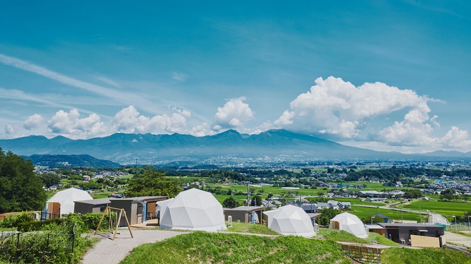 「誰にも干渉されないという贅沢」がコンセプトの長野県佐久市のグランピング。約200㎡のスイートヴィラにはプライベートサウナとドッグランを完備、ラグジュアリードームテントは全7棟で大きな窓から星空を独り占め。本館5階の天然温泉は浅間山を一望する露天風呂で滞在中何度でも入り放題。夕食は蓼科牛サーロインステーキや信州ホエー豚、佐久産五郎兵衛米など地元食材づくしの贅沢BBQです。